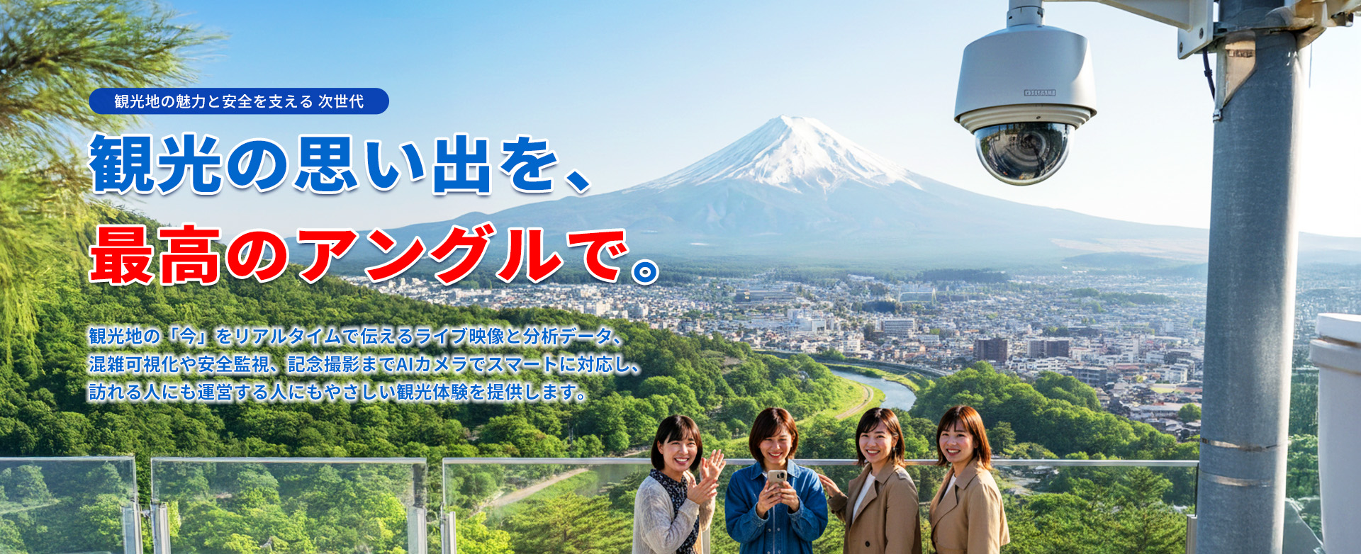 展望台やビューポイントに最適な位置へ専用カメラを設置。人物と景色が映えるベストアングルで撮影できます。
